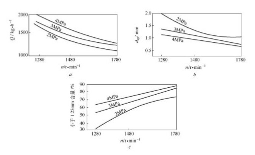 Figure 12-2c shows that , within a small range , to increase the frequency , can improve the crushed product in the 28 % -45% of the less than 1.25mm fractionated products .
